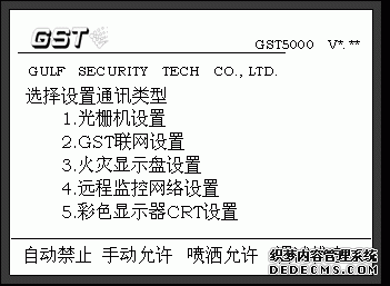 JB-QB-GST500、JB-QG/QT-GST5000火災(zāi)報(bào)警控制器(聯(lián)動(dòng)型)(以下簡(jiǎn)稱為控制器)通過與不同功能的網(wǎng)卡聯(lián)接可以實(shí)現(xiàn)GST系列 控制器間的聯(lián)網(wǎng);通過光柵測(cè)溫通訊板與光柵測(cè)溫機(jī)通訊,實(shí)現(xiàn)光柵測(cè)溫機(jī)的火警與故障檢測(cè);也可與CRT顯示系統(tǒng)聯(lián)接完成圖形化監(jiān)控。控制器對(duì)通訊卡運(yùn)行狀 態(tài)進(jìn)行實(shí)時(shí)監(jiān)測(cè),實(shí)現(xiàn)即插即用。GST500/ GST5000控制器界面顯示相同,以GST5000控制器顯示界面為例說明。1.2通訊系統(tǒng)的連接